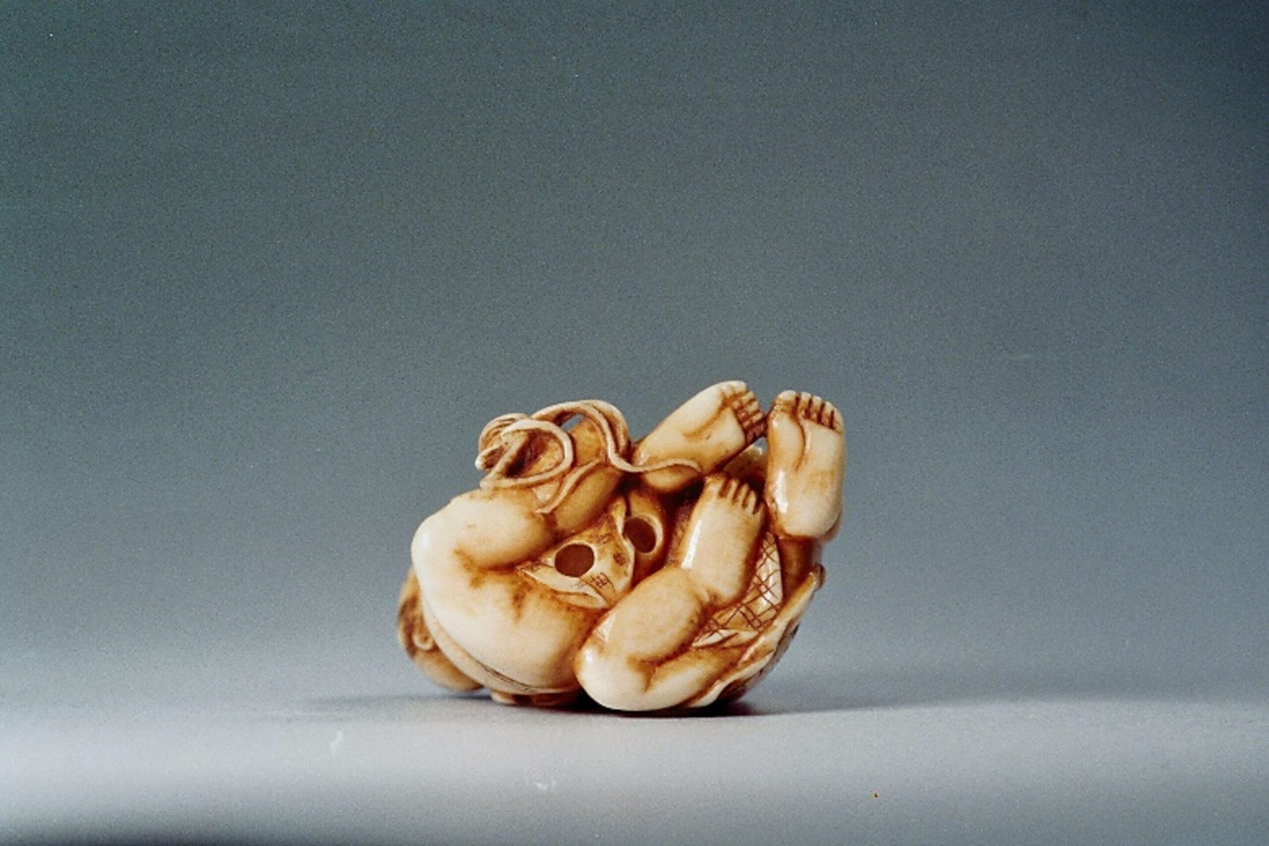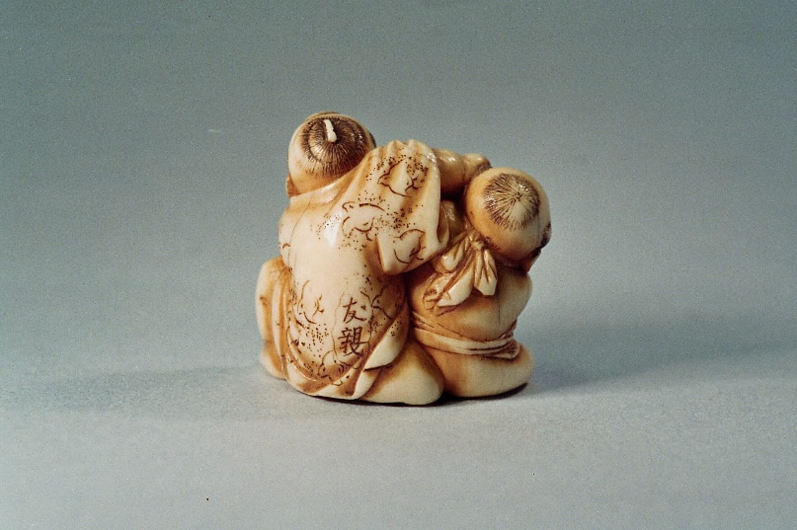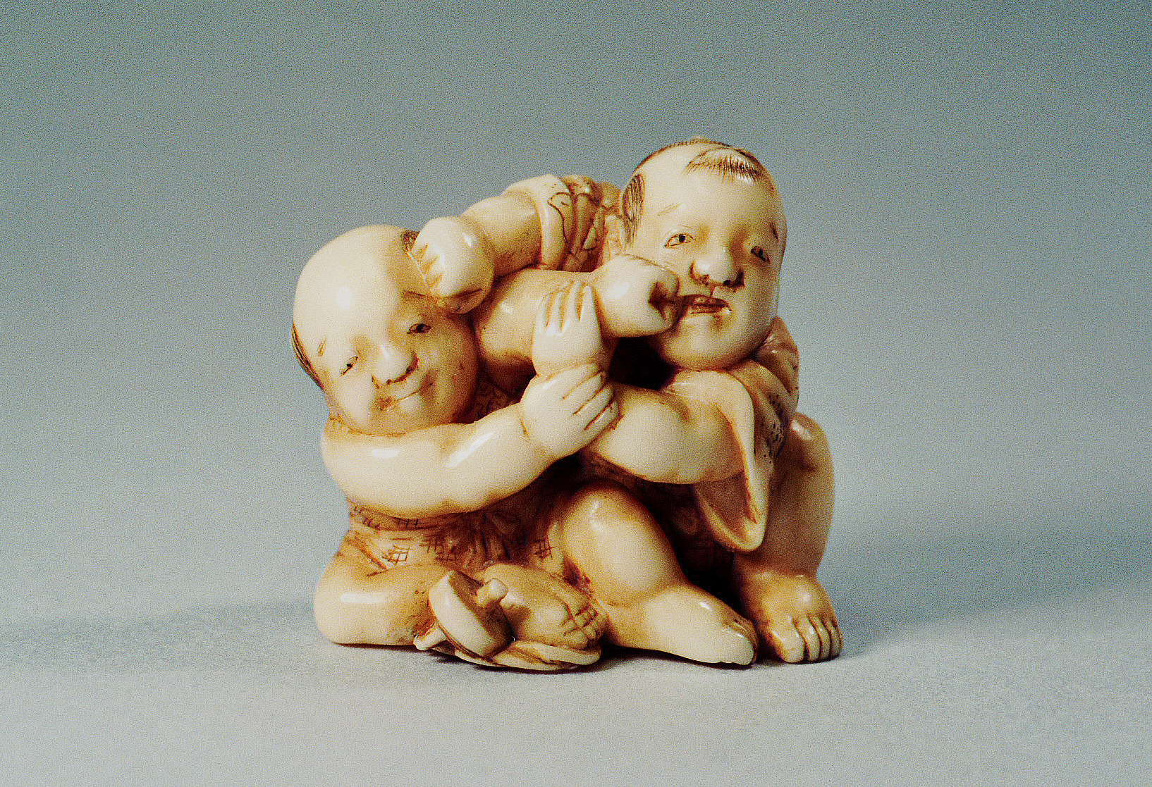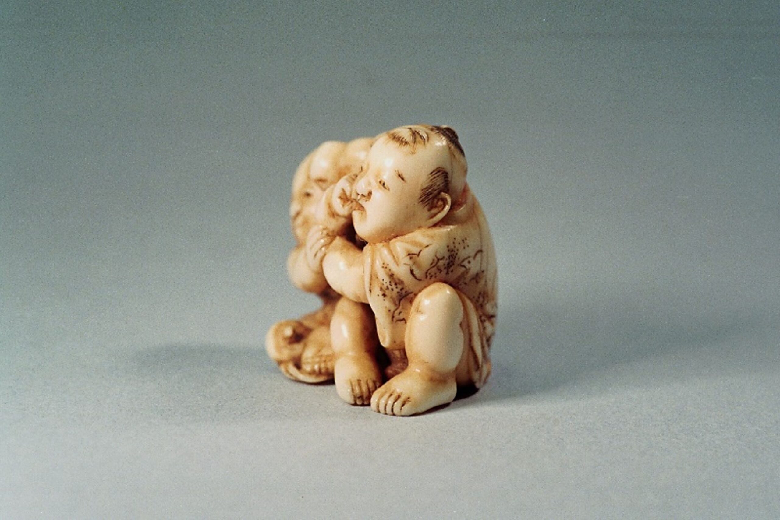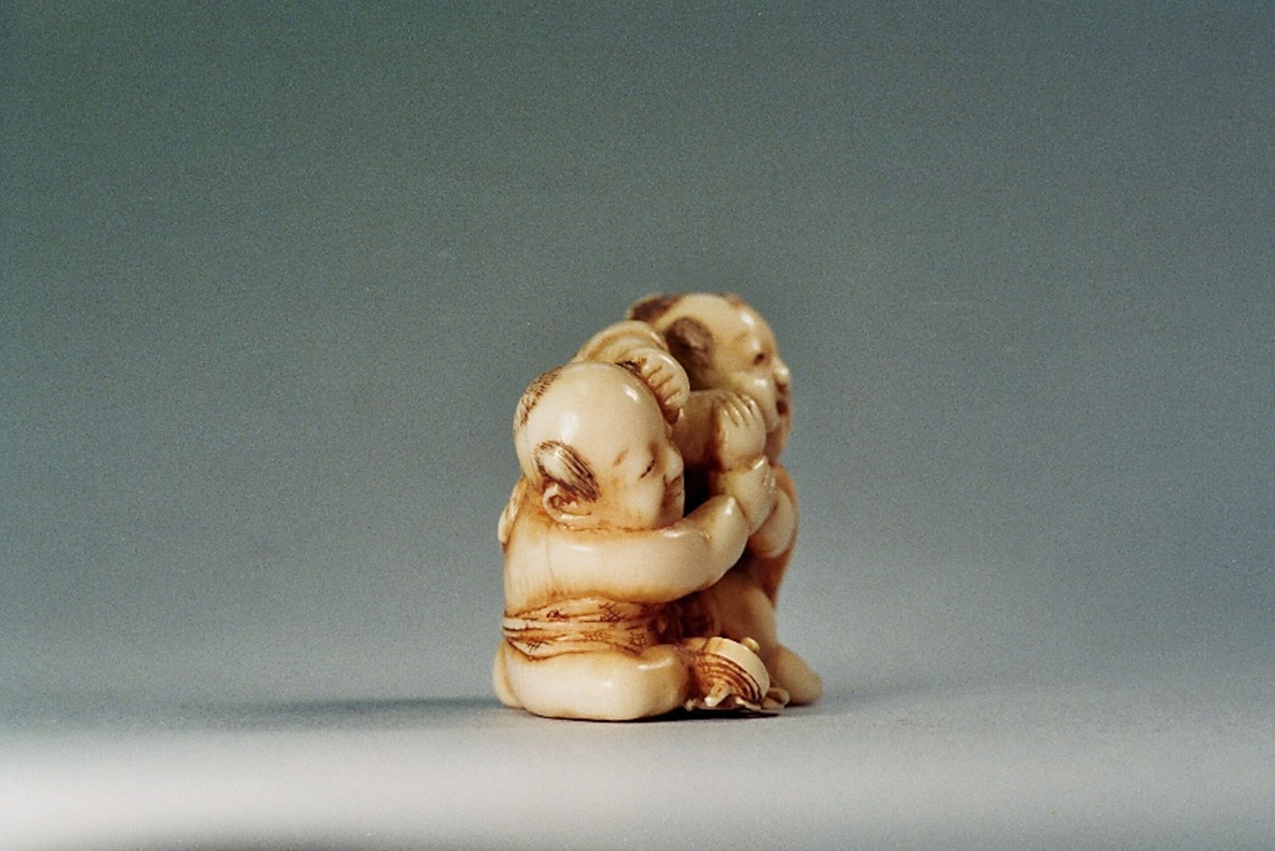 KARAKÔ, chinesische Knaben. Siehe Anmerkung zu Nr.7. – In dem Mass, in dem in der Edo-Zeit das Bürgertum zu Geld und Ansehen gekommen war, stellten Netsuke des 19.Jh. häufig Alltagsszenen dar.