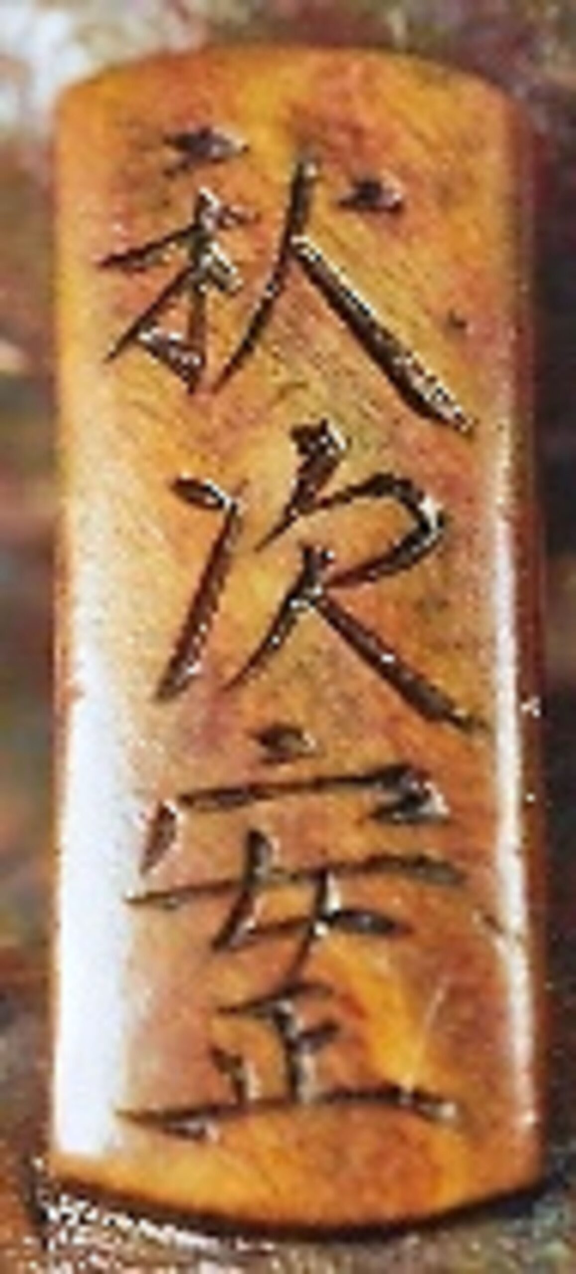 SHÛJI: Der Meinertzhagen Card Index p.774 verzeichnet vier Schnitzer dieses Namens. Nr.2 hat die Signatur dieses Stücks. Davey/Hindson 1974 bildet die Signatur unter Nr. 2569 ab und vermerkt, „Wood, Animals, late 18th., early 19th. century.