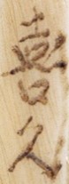 YOSHIHISA: bei Lazarnick, N&IA, p.1232, ist unter diesem Namen und mit dieser Signatur, dort allerdings in einer der Druckschrift näherstehenden Version, nichts so „fliegend“ wie auf diesem Stück, ein Netsuke abgebildet. Mehr ist dazu nicht bekannt.