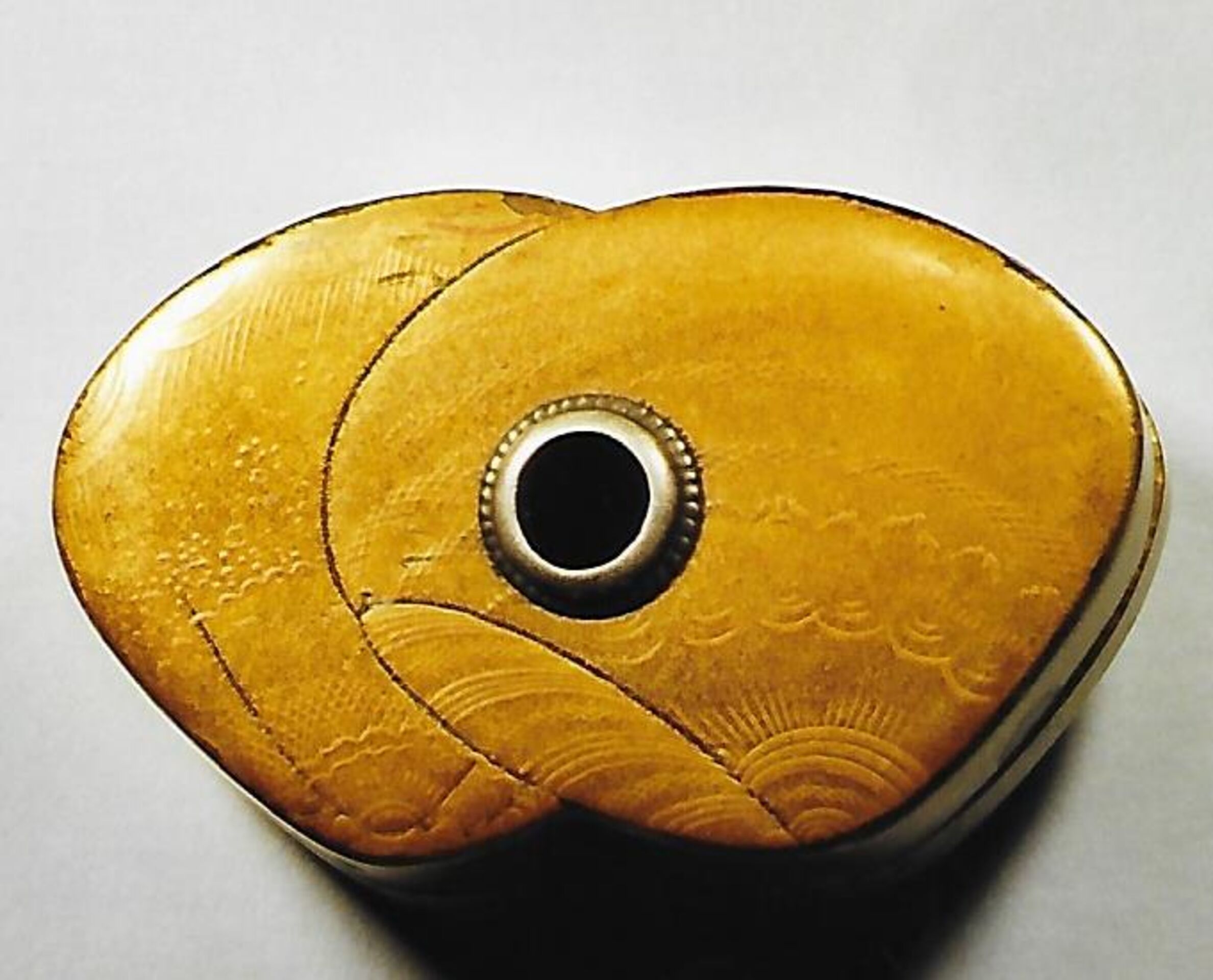 HAKO-Netsuke verbinden die Netsukefunktion mit einem zusätzlichen Nützlichkeitsaspekt. In dem Minitaturschächtelchen können Medikamente aufbewahrt werden.